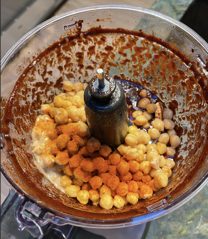 A batch of hummus I made recently using reconstituted dried chipotles:
